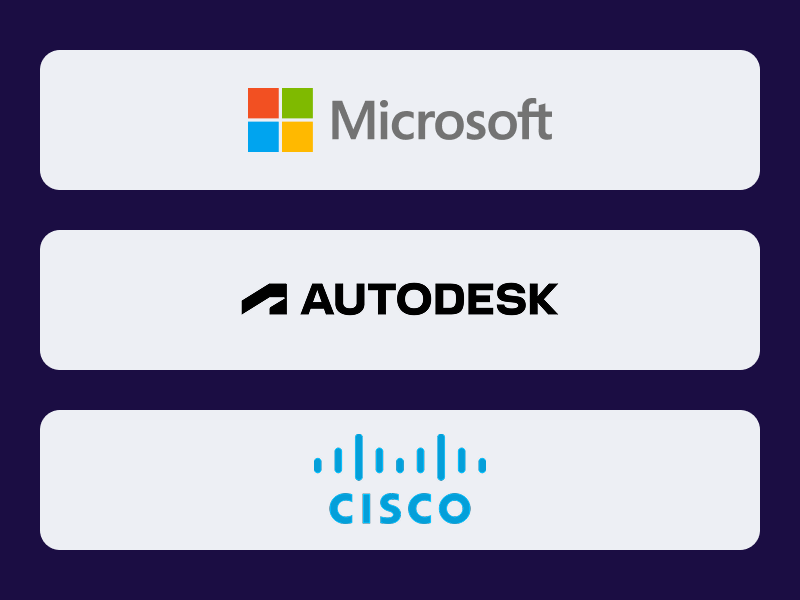 Готовим студентов Академии к прохождению профессиональной сертификации Cisco, Microsoft, Autodesk по профилю обучения. Следим за актуальными требованиями экзаменов, чтобы выпускники могли подтвердить свою квалификацию на международном уровне.